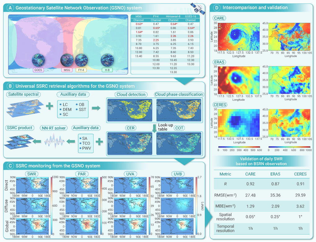 ▲多星组网地表太阳辐射观测系统及成果图。(中国科学院空天信息创新研究院供图)